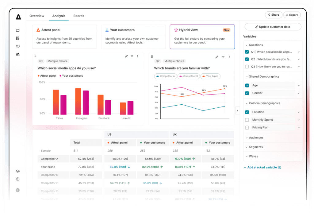 Choose a platform that is easy-to-understand, reliable, and provides expert research advice, like Attest. Our dedicated research experts always make sure all our clients—yes, regardless of the plan you choose—get the most valuable customer insights. If you’re keen to learn more about the tools out there, check out our guide on consumer insights software.