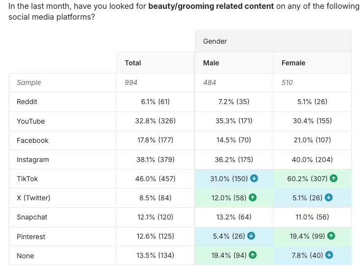 For this research we surveyed 1,000 Gen Zers aged 18 to 27 in the United States in October 2024 using Attest’s platform. We asked questions about their beauty and grooming habits, as well as how they access content online and on social media.