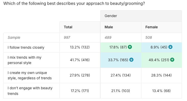 Two fifths (41.7%) say they mix trends with their personal style, and 27.9% claim to create their own unique look, regardless of trends. This desire for individuality is especially pronounced among women, with nearly half (49.4%) blending trends with their personal aesthetic vs 33.7% of men.