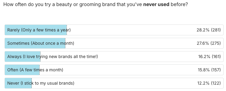 Gen Z consumers are looking to experiment with skincare brands, our data shows. The majority (88%) are open to trying new beauty abd grooming brands that they have never used before.