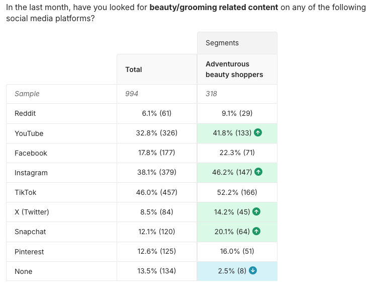 Looking even closer, 1 in 3 (32%) are exploring a new brand at least once a month. Let’s look more into this audience we will call Adventurous Beauty Shoppers.