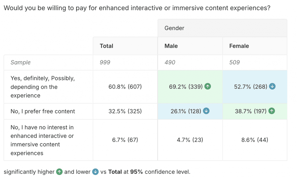 While Gen Z values free content, with 32% preferring not paying for enhanced experiences, over 60% of respondents are potentially willing to pay for enhanced or immersive experiences if they perceive value.