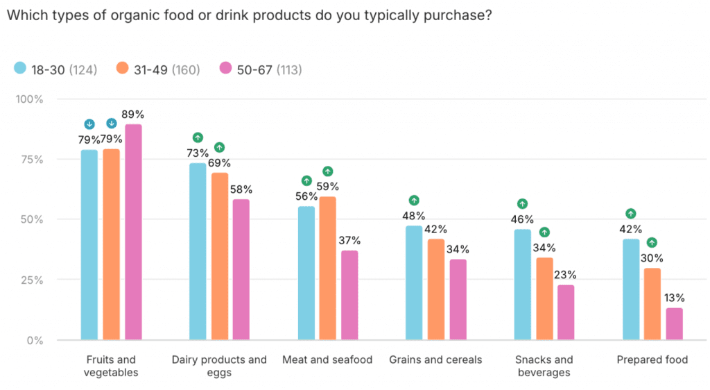 One further age-related finding to note is that consumers aged 31-49 are less likely to believe organic food is better for the environment and animal welfare – sentiment which might be interesting to dig into.