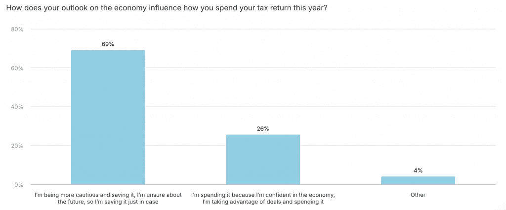 Those whose financial situation has improved are overindexing on spending their tax returns, while those whose situation has gotten worse are more likely to save their return this year. All in all, almost 70% of respondents are planning to save their returns due to the outlook on the economy.