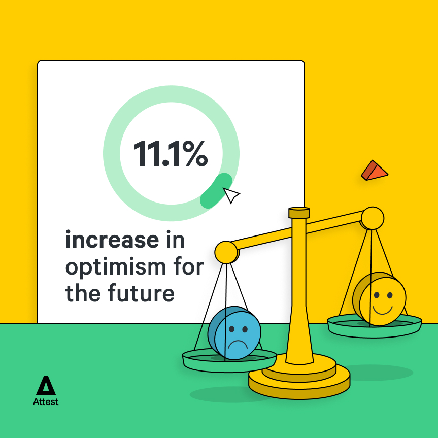Brits are feeling less financially secure than they were 6 months ago (down from 4.9 out of 10 to 4.8) and less happy (down from 5.6 out of 10 to 5.4). But in spite of this they report being more optimistic about the future (up from 4.5 out of 10 to 5).