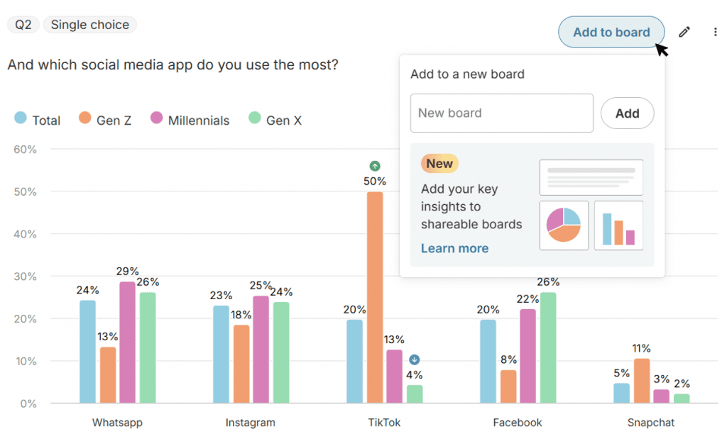 From there, it helps to split your results down further. Looking at responses by demographics, audience, wave or answer type can reveal differences that are easy to miss in the overall averages.