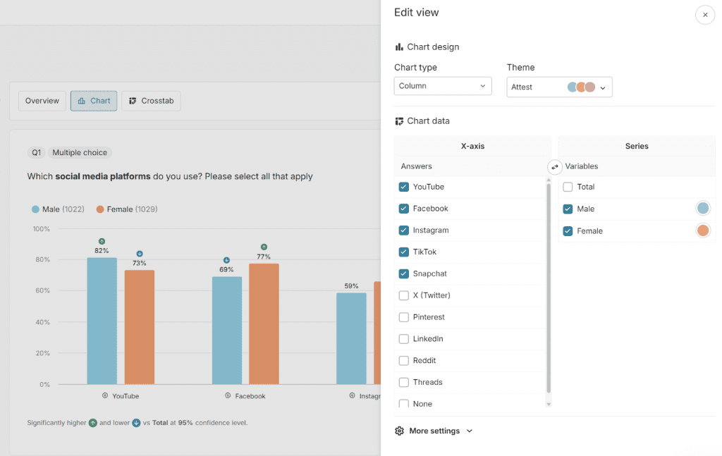 If you need a more detailed view, crosstabs can help you compare how different groups responded and examine relationships between answers more clearly.
