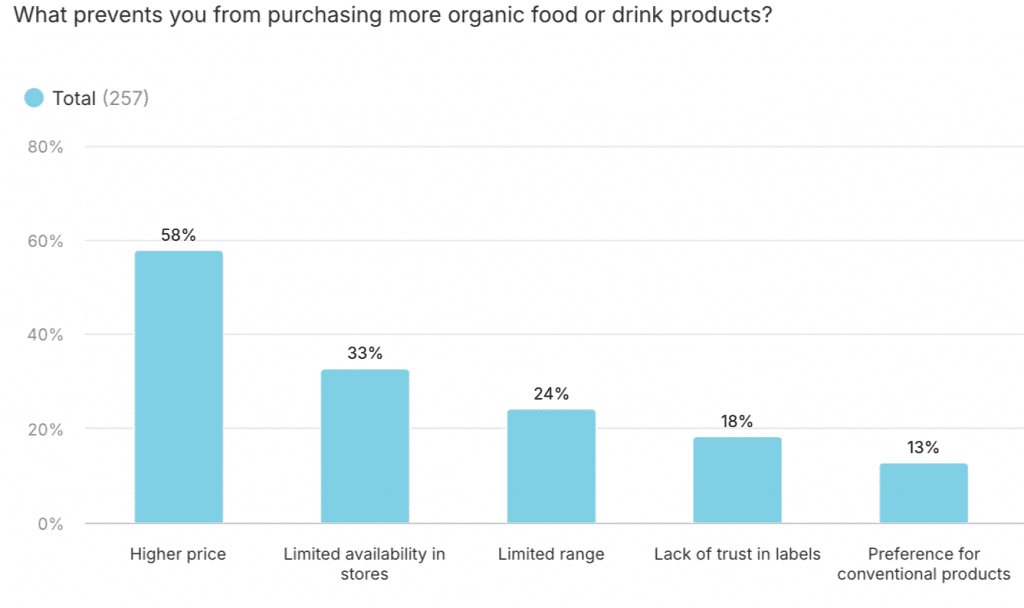 Price remains the biggest hurdle, with an overwhelming 82.5% deterred by the high cost. This suggests that more competitive pricing or attractive promotions could win over these consumers. With that said, trust in organic labels is a challenge for this segment, as 14% express distrust and 51.5% are uncertain about credibility. With this number of consumers on the fence, it presents an opportunity to convert them with positive PR around organic certification schemes.