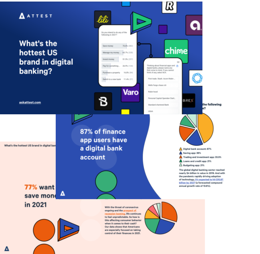 And to give you a taste, we’ve run a survey looking at brand awareness in the financial technology sector, specifically digital banks. We’ve chosen eight brands to investigate, polling 500 US consumers that already use financial apps today to discover the biggest movers and shakers right now (check out the source data and interactive Attest dashboard).