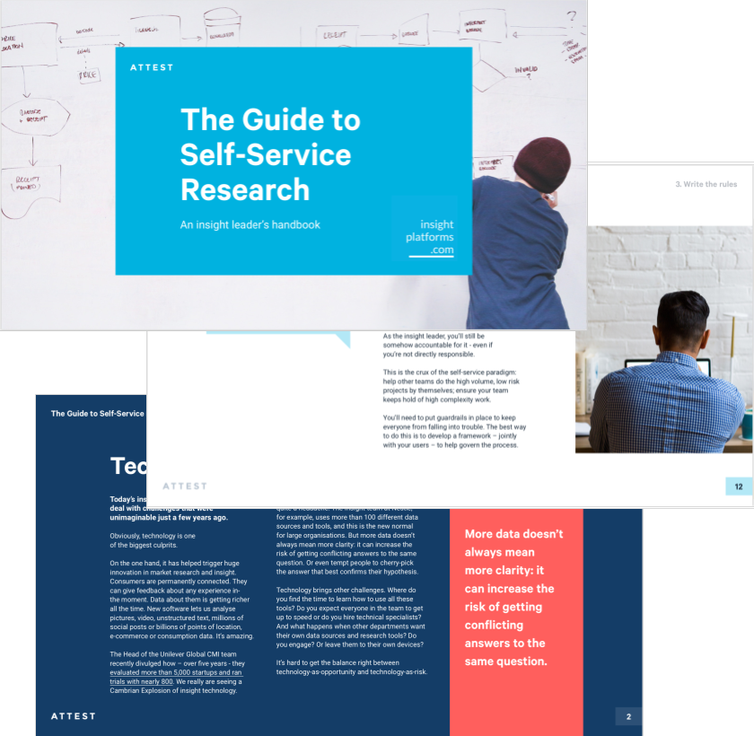 With the rise of self-service research tools, actionable insights are often just a click away – but that brings with it a whole host of new challenges for Insight Leaders. Discover Mike Stevens’ 7-step process to getting the most out of self-service research in this downloadable handbook.